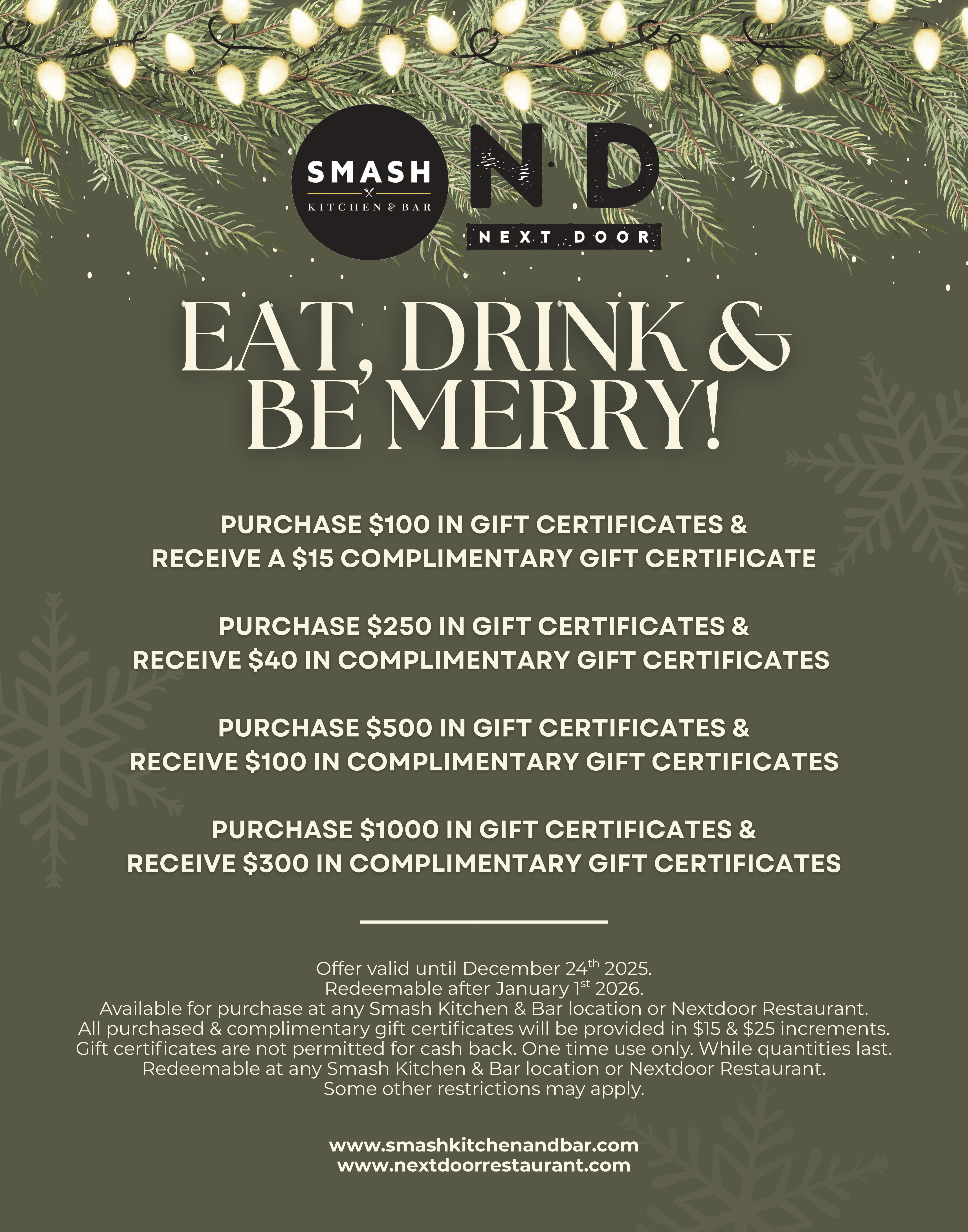 Looking for the perfect place to gather? Our private dining spaces offer a beautiful, modern backdrop for any occasion—from birthdays and bridal showers to corporate dinners and holiday parties. Choose from the cozy Mill Room, the stylish Lounge, or reserve the entire restaurant for an unforgettable experience. With thoughtful service, a versatile setting, and delicious food at the heart of it all, your event is in great hands at NextDoor.